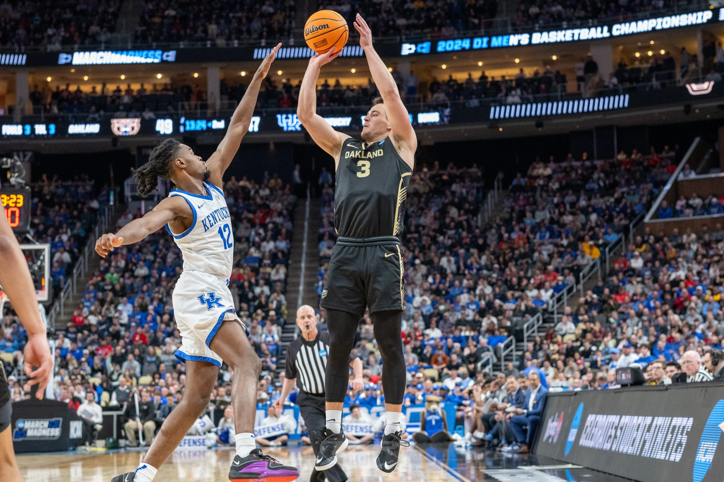 I was lucky enough to have another year of eligibility due to Covid and took advantage of it thanks to Coach Kampe taking a chance on me as a DII grad transfer at Oakland. I began the year as a starter but got into a real slump towards the middle of the season. While I continued to trust my work, I began to question what I was doing wrong. After one of my worst games, Coach Kampe pulled me aside and told me I was hurting my teammates not with my poor play but with my lack of trust in myself. Going out on the floor but not believing I belonged was a disservice to my teammates, my coaches, and most of all to myself after the countless hours I had invested into this game. I had the next day’s game circled on my calendar since I decided to commit to Oakland, the second game of our Wisconsin road trip against my hometown school UW-Milwaukee. I knew there would be a crowd and I ended up having about 100 family members and friends there supporting me. I trusted in myself and my work enough to turn things around and have a game I’ll never forget, 28 points and the shot to force overtime, the shot to force double overtime, and the go ahead shot in double OT. Up to that point it was my best game of the season and it was in a setting that I had always dreamed of playing. I allowed myself to believe again, to remember why I had gotten to that point and most importantly what I had done to earn my position. My confidence grew from there and we got on a roll as a team winning 12 of our last 15 games. Cutting down the nets after winning the Horizon League Tournament knowing the next stop was the big dance, along with being named to the All-Tournament Team, is a feeling I’ll never forget. Sitting in my locker and reflecting, I felt everything I had committed to the game had been worth it, and I knew I earned all the success alongside my teammates and coaches. For the moment I was satisfied not only with the victory and the conference championship, but with the berth to March Madness, with a chance to play in the tournament where every little kid’s dreams lead.